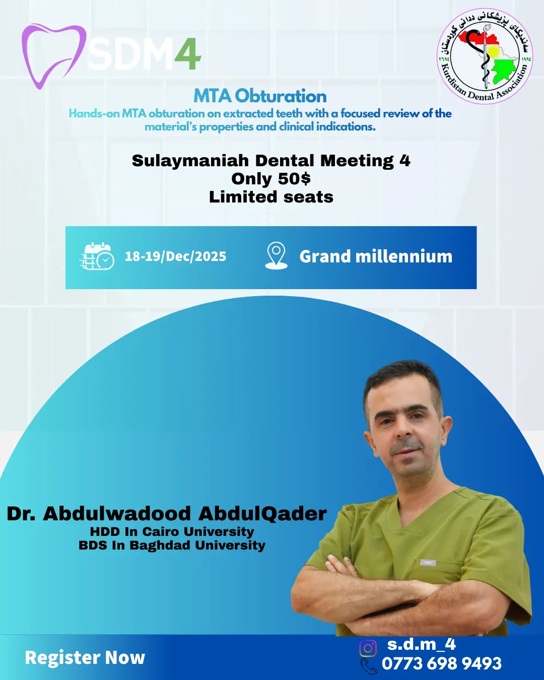 Join us at the 4th Sulaymaniah Dental Meeting for an exclusive workshop: